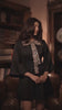 A statement in timeless elegance, the dress reimagines royal craftsmanship for the modern muse. Tailored in luxurious silk satin, this structured mini dress features flared sleeves and a meticulously hand embroidered gota lace bow that cascades down the front reminiscent of temple mirror work and festive grandeur. Perfect for soirées, cocktail evenings, or intimate festive gatherings, this piece blends old world charm with contemporary sophistication.